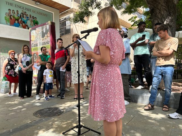 Este emotivo discurso fue un homenaje al valor de las personas refugiadas y manifiesto que “desde este pequeño rincón del mundo que es Jaén os decimos a todas las personas refugiadas que estáis aquí: sed bien venidas, aquí tenéis vuestra casa, contad con nuestro respeto y nuestra solidaridad. Y en la medida de nuestras fuerzas contad con nosotros para todo lo que necesites. ¡Vivan las personas refugiadas!