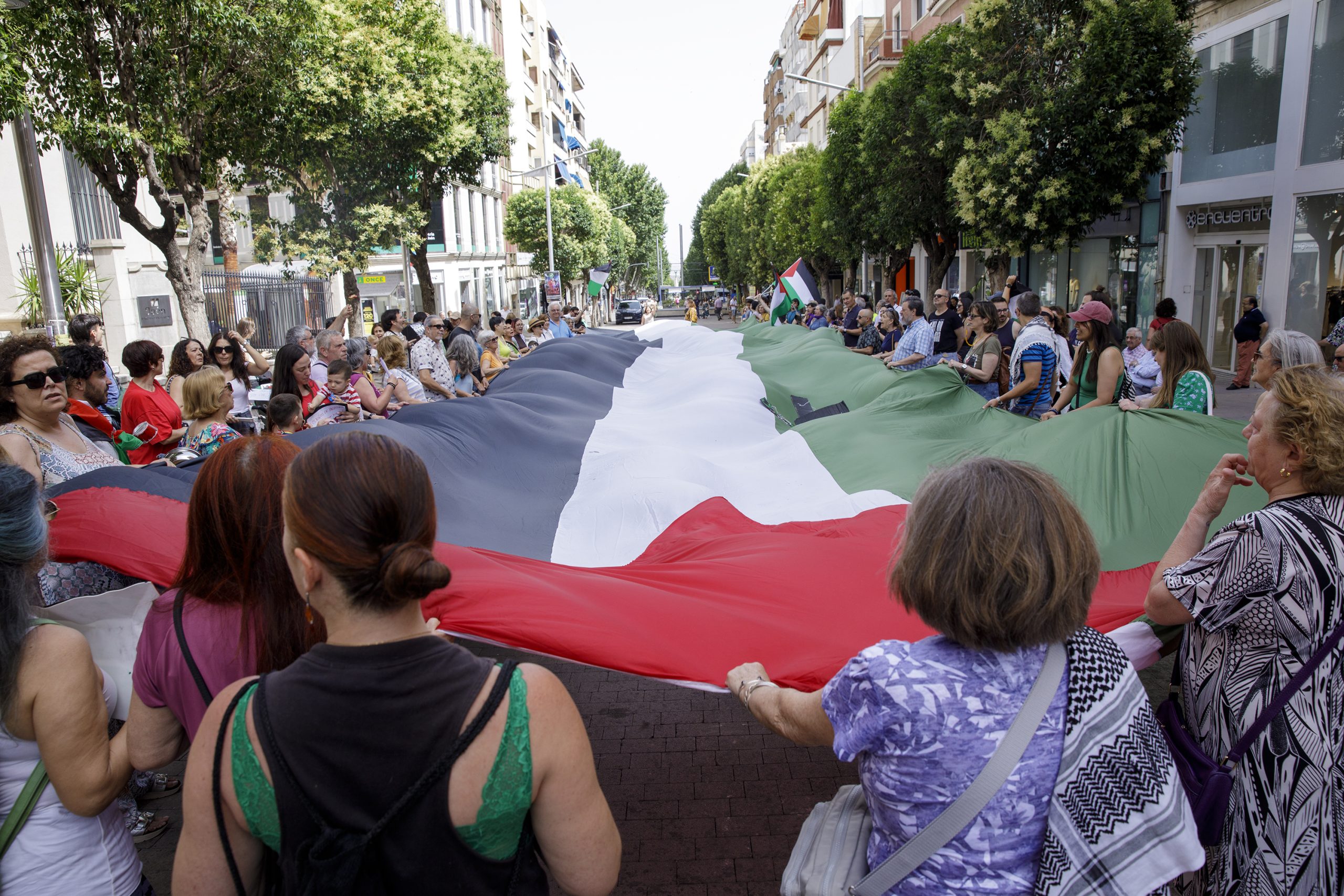 Convocados por la Plataforma Jaén con Palestina, ayer 14 de junio a las 11,30 de la mañana en la calle Roldan y Marín, numerosas personas volvimos a manifestar con nuestra presencia y nuestra voz el apoyo al pueblo palestino.