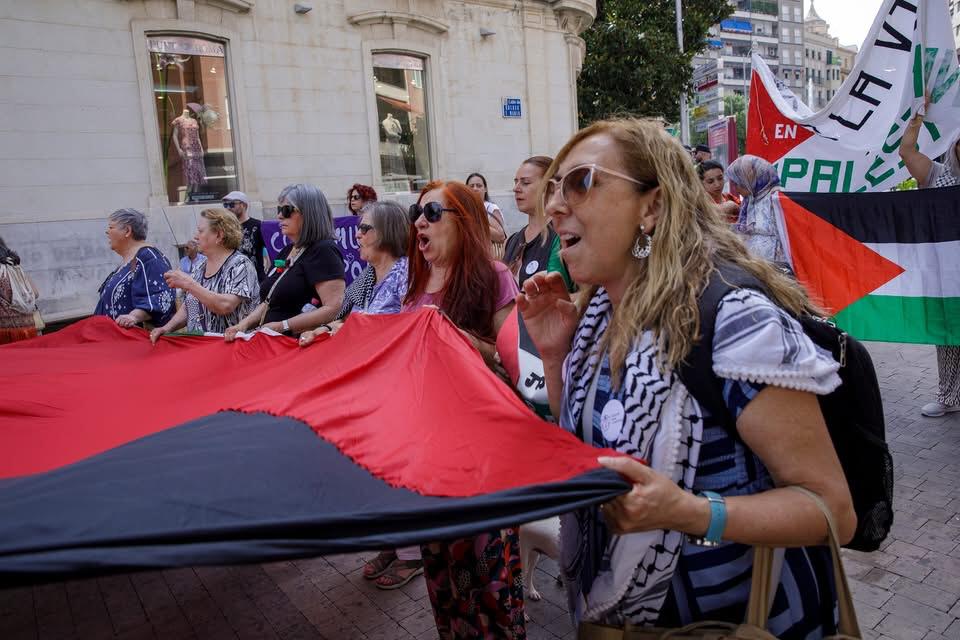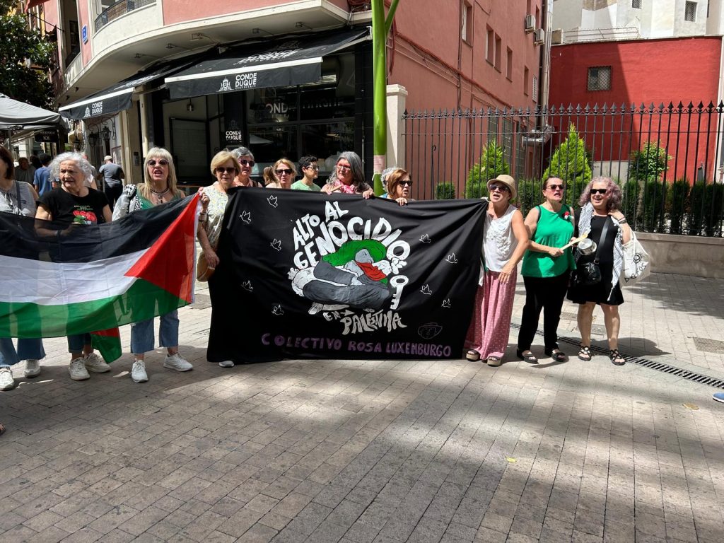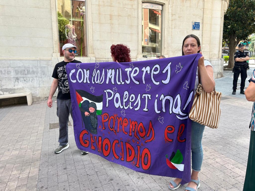 Las personas asistentes a esta concentración han manifestado su rabia por la estrategia del estado de Israel de la triple masacre: MUERTE, HAMBRUNA Y DESTRUCCIÓN DE TERRITORIO. Un testimonio de un enorme sentimiento nos lo trasladaba Tere Ávalos de Feministas 8M: “Estoy aquí porque no quiero ser cómplice de un genocidio y para unir mi grito con los de millones de personas que se revelan contra esa situación y contra los gobiernos que lo provocan y permiten.”