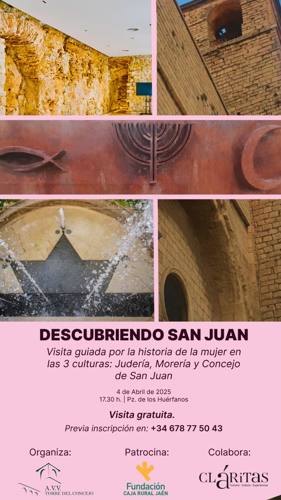 1 evento,![]() Visita guiada por la historia de la mujer en las tres culturas: judería, morería y Concejo de San Juan. No te pierdas esta interesante actividad y aprende más sobre el pasado de nuestra ciudad, con una historia tan fascinante como, en ocasiones, desconocida. Inscripción previa en el teléfono: 645 900 171. Paseo por el barrio... |
