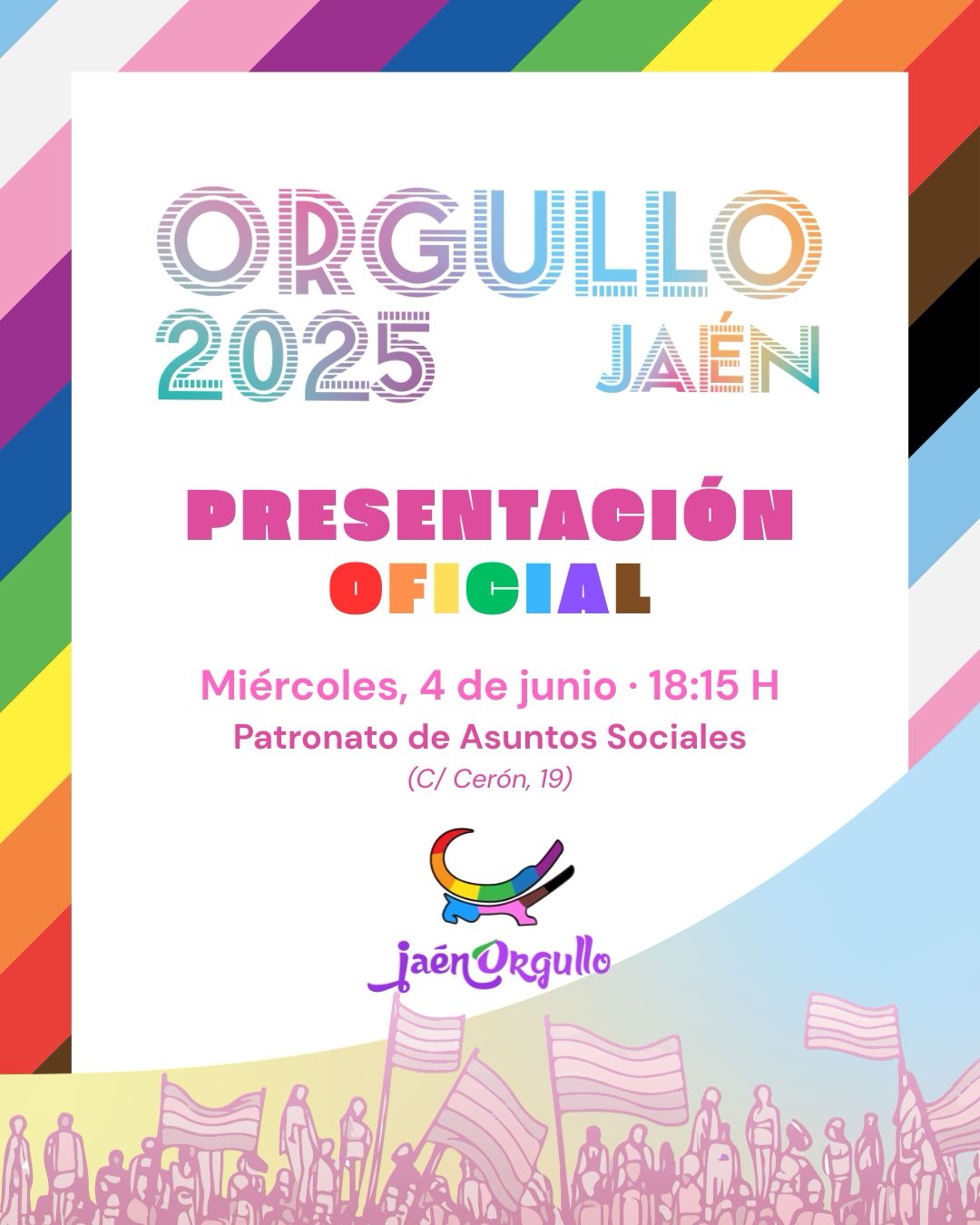 🏳️🌈 ¡Nos encantará verte en la presentación oficial del Orgullo de Jaén 2025! Ven a conocer en primicia todo lo que estamos preparando para llenar las calles de Jaén de diversidad, cultura, reivindicación y alegría. 📍 Patronato de Asuntos Sociales – C/ Cerón, 19 📅 Miércoles 4 de junio 🕕 18:15 horas Durante el acto...