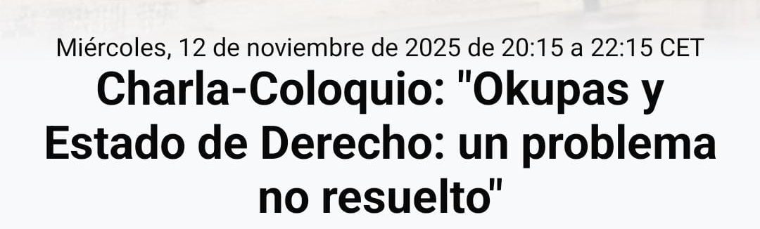 Okupas y Estado de Derecho: un problema no resuelto 12 de noviembre, 2025 @ 20:00 Asociación de la Prensa Jaén Bernabé Soriano, 6-1º, Jaén, Jaén, Spain